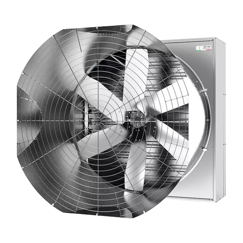 The EOC 56 Exhaust Fan, featuring a 53" air outlet cone, utilizes the "Venturi effect" for exceptional efficiency and reduced operational costs. Its galvanized steel wallhousing and shutter blades offer superior corrosion resistance, even in harsh environments. The fan is thoroughly tested and certified by BessLab.